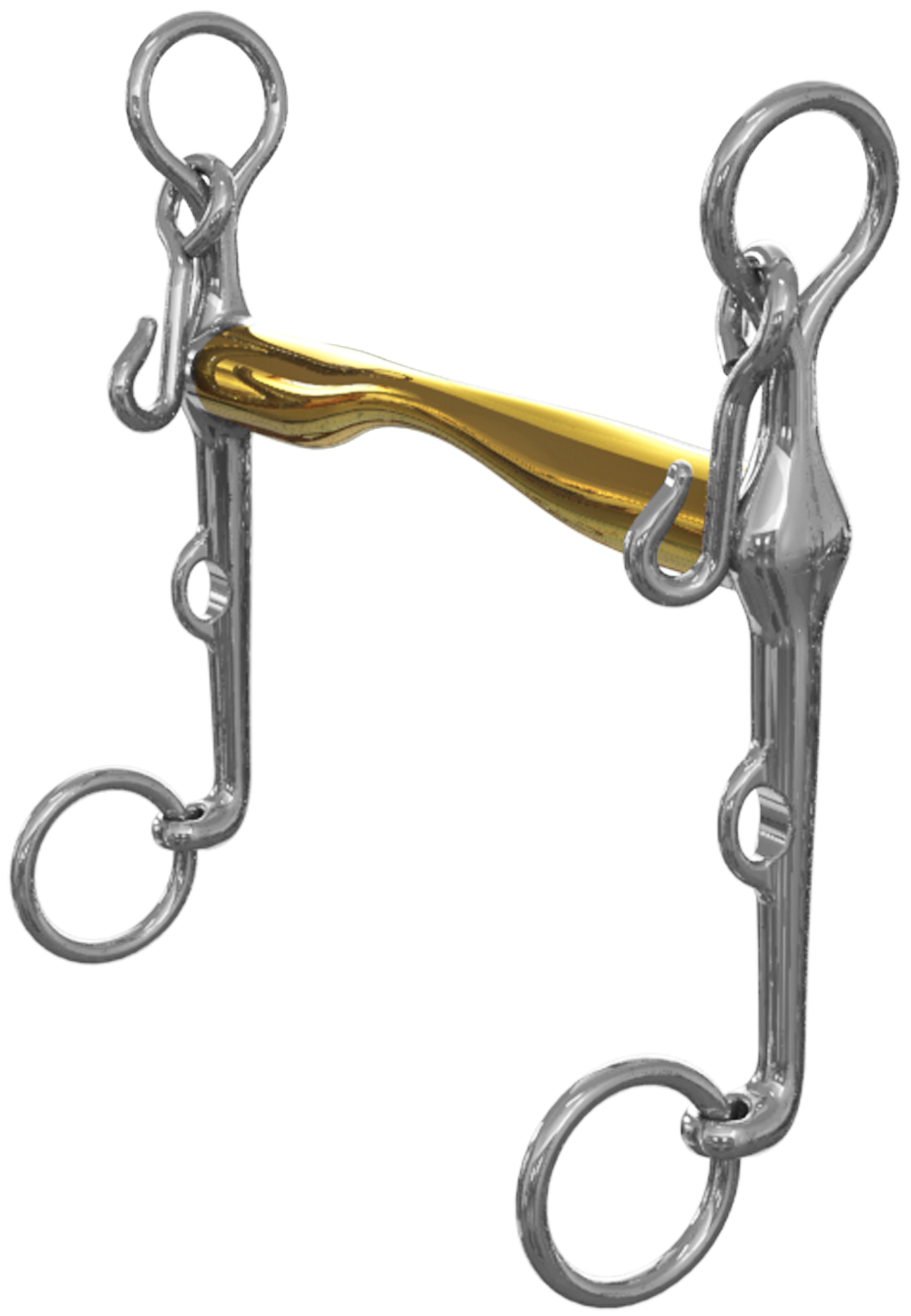 Revolutionary unique concept in Weymouth design – the first of its kind! This design is often beneficial for the “short smile” (small distance from the corner of the lip to the muzzle), the sensitive busy mouth or tongue evasions or horse’s that experience difficulty in breathing and swallowing when in an advanced outline.