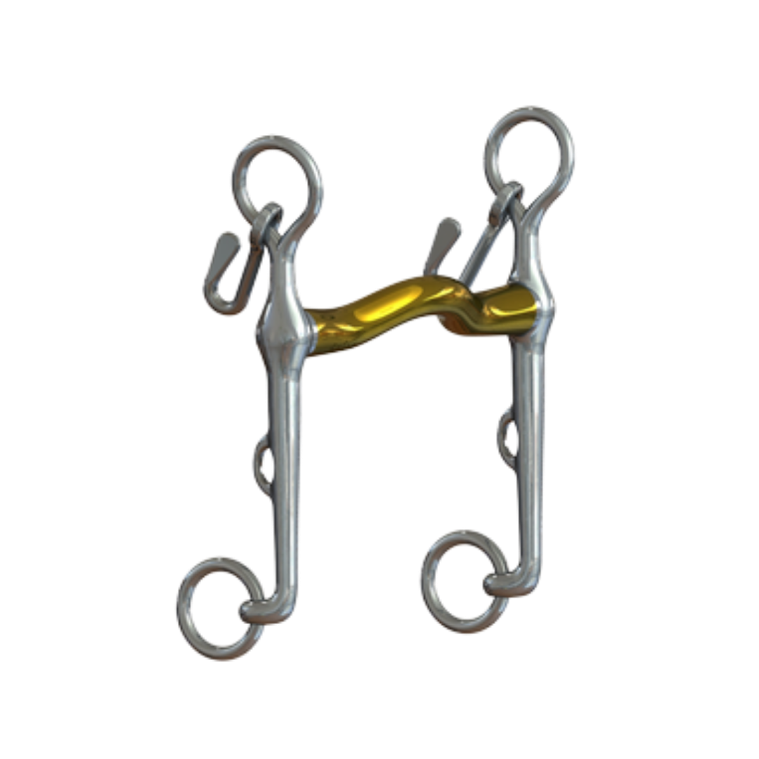 This slim, tongue bridged mouthpiece gives the degree of lift needed to free up the shoulder, enabling the rider to ask for the more advanced movements.