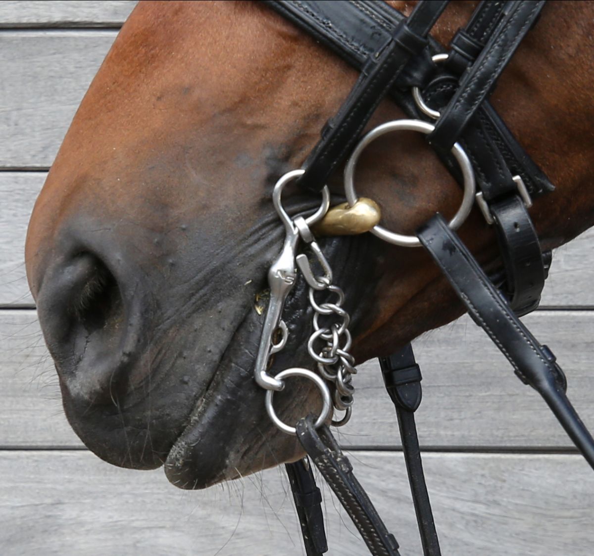 Designed to create more separation between the curb and bridoon, thus allowing independent rein aids, reducing the possibility of trapping. Our published scientific research (Cross, G.H. et al., Journal of Equine Veterinary Science 48 (2017) 129–135) has shown when using double bridles it is not uncommon for the two bits to become trapped so when the rider is employing the bridoon, in fact the curb is inadvertently acting.