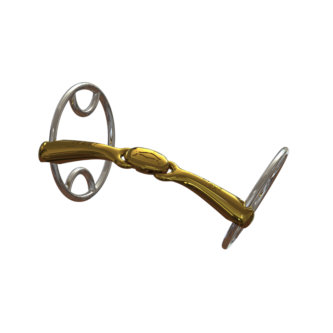 The Beval ring gives rein and cheekpiece attachment options in a neat package but whatever option you choose the mouthpiece remains in constant relative alignment to the tongue. The flattened underside of the FlexZ cannons with their anatomy-inspired recesses are held parallel to the tongue whatever riding activity you enjoy and for whatever rein tension you employ.